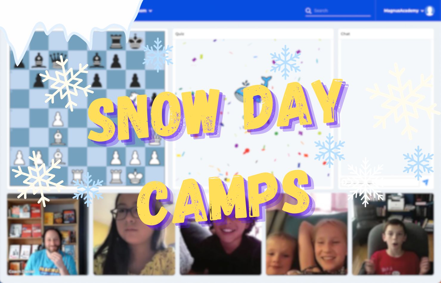 Our online chess mini-camps are a fun way to spend a day without school! Camps have a mixture of live lessons, practice games, and puzzles. Campers are divided by skill or age so that everyone gets useful lessons and fair games. A few more things to know: